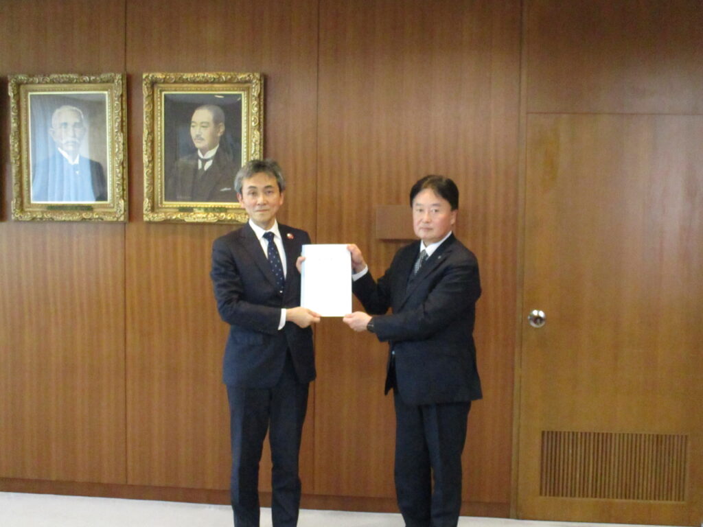11月28日(金)午後13時30分より、札幌市測友会深見会長、若本副会長、佐川副会長、松木副会長が札幌市役所を訪問し、天野副市長に「要望書」を提出しました。要望書には、地図整備・地籍調査事業の継続、最低制限価格の引き上げ、早期発注等について盛り込みました。